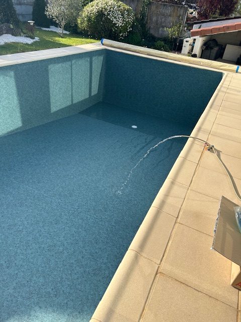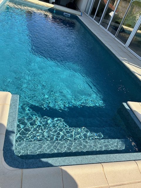 Le résultat de cette rénovation est tout simplement spectaculaire : le bassin bénéficie désormais d’une esthétique à la fois moderne et organique, créant une atmosphère apaisante qui invite à la détente. La membrane Granit Green allie robustesse et design, garantissant une étanchéité parfaite tout en sublimant le style de la piscine.