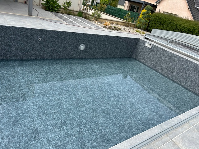 Nous avons récemment mené à bien la rénovation d’un bassin en utilisant la membrane SopremaPool 3D 180/100 Sensitive Grey. Ce choix de revêtement apporte une touche de modernité avec son élégante teinte grise, qui confère au bassin une allure à la fois sobre et contemporaine.